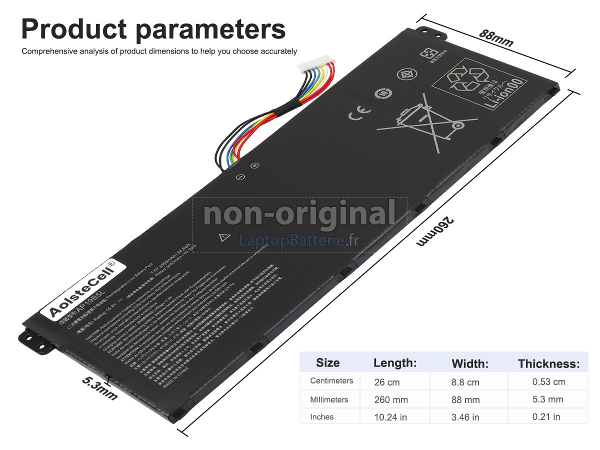 Batterie pour Acer AP19B5L est une produit de haute-qualité, supérieur performance, elle est 100% compatible et elle répondra ou dépassera les spécifications de la batterie d'origine. Pour garantir la meillure performance, la batterie est désignée dans une protection de sécurité d'intelligence multiple et adoptée le carter plastique ingifugeant ABS, puce IC de protection originale, batteries lithium-ion de marque.