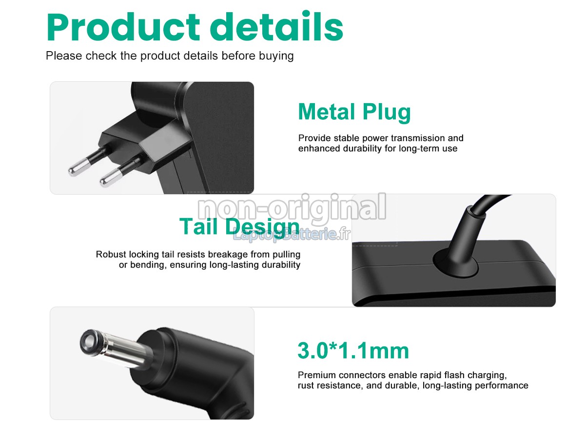 Nous offrons 12 mois de garantie pour le remplacement de adaptateur pour ordinateur de Acer AK.045AP.075! Pendant cette période, si votre adaptateur tombe en panne à cause de problèmes de qualité, nous vous remplaçerons votre adaptateur avec une autre.
