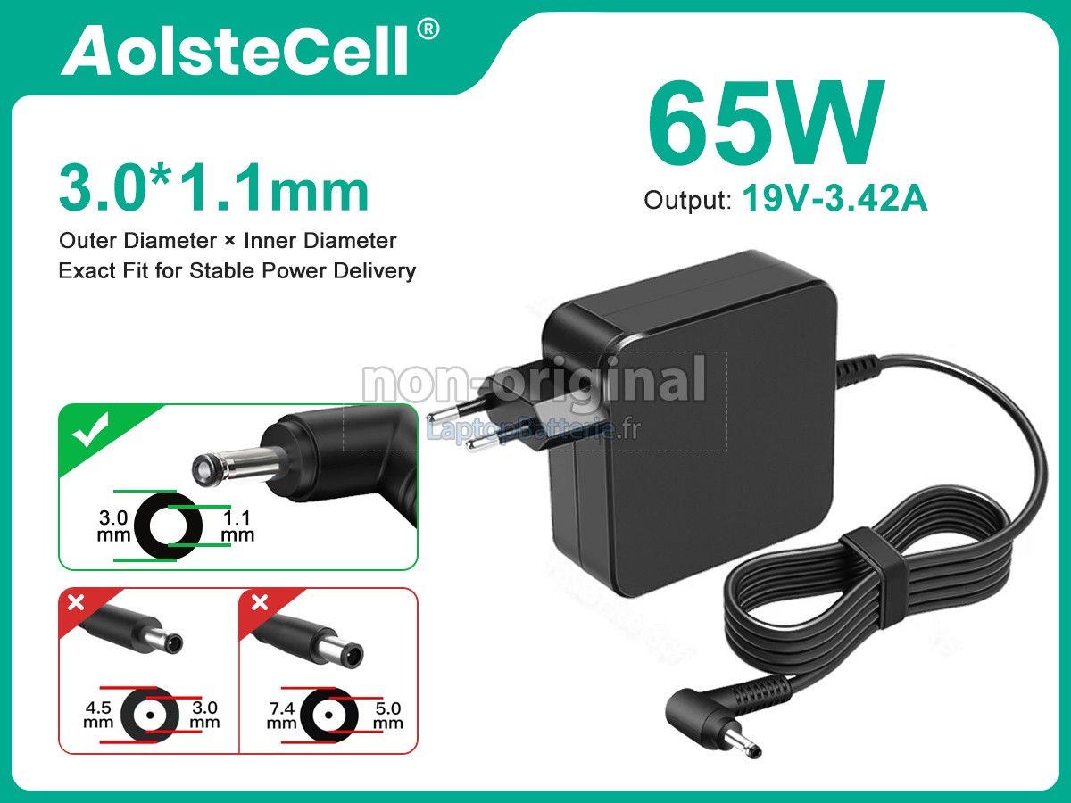 Nos exigences en matière de performance et de sécurité sont extrêmement strictes, et chaque adaptateur de remplacement pour Acer NP.ADT11.00 Q a passé plus de cent tests rigoureux de qualité et de sécurité. Plus important encore, nos adaptateur pour Acer NP.ADT11.00 Q sont vendus directement en ligne, sans aucune marge d'intermédiaire. Par conséquent, le prix que vous trouvez sur notre site Internet sera généralement 20 à 50 % inférieur à celui de nos concurrents. Si vous trouvez un produit moins cher chez un de nos concurrents en ligne, veuillez nous en informer et nous réglerons ce problème pour vous.