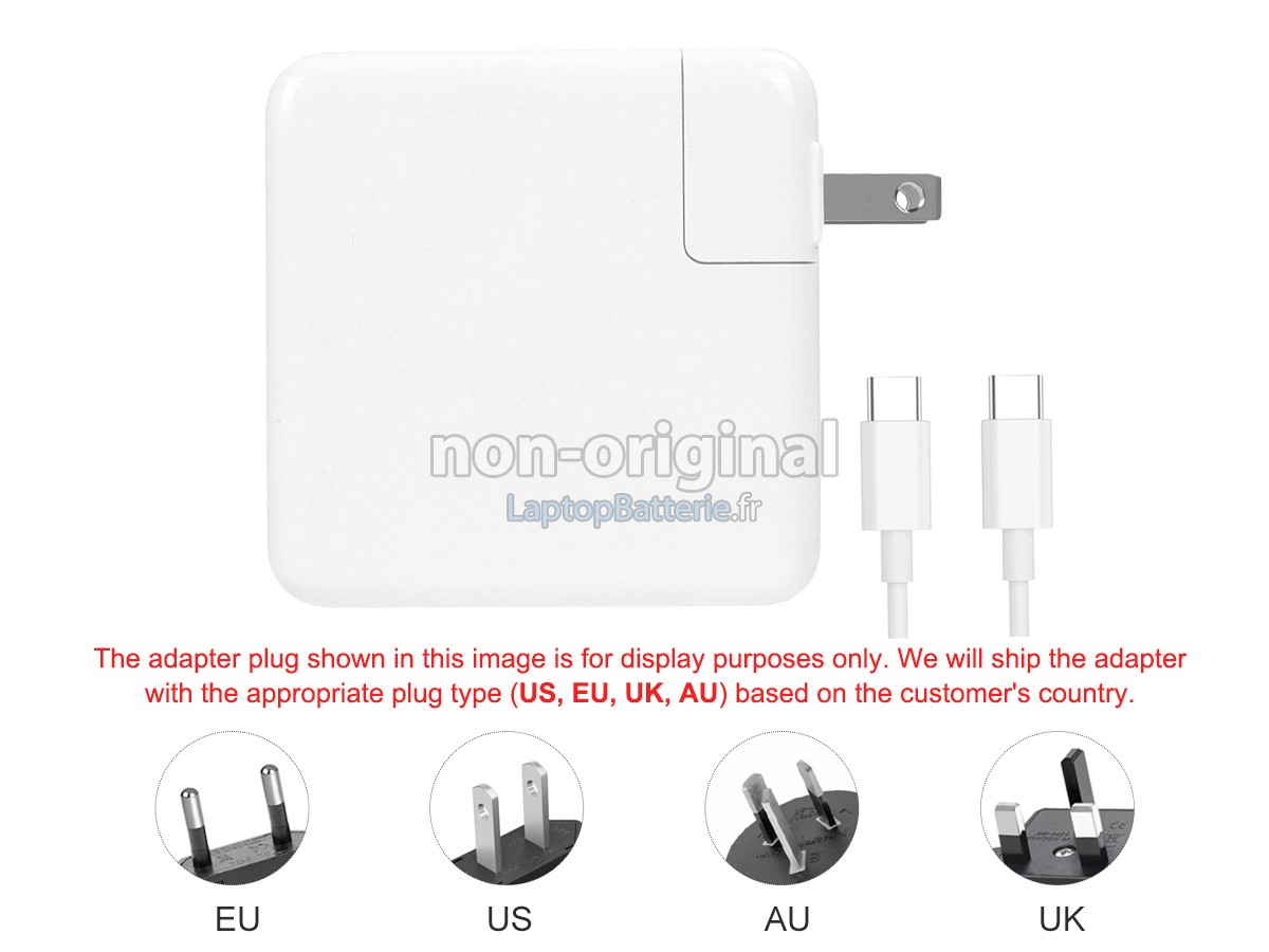 A: Bonjour, Nous vous remercions de nous avoir contactés ! L'adaptateur secteur intelligent 87W est compatible avec le Apple 87W 20.2V-4.3A 100-240V~1.5A 50/60HZ.