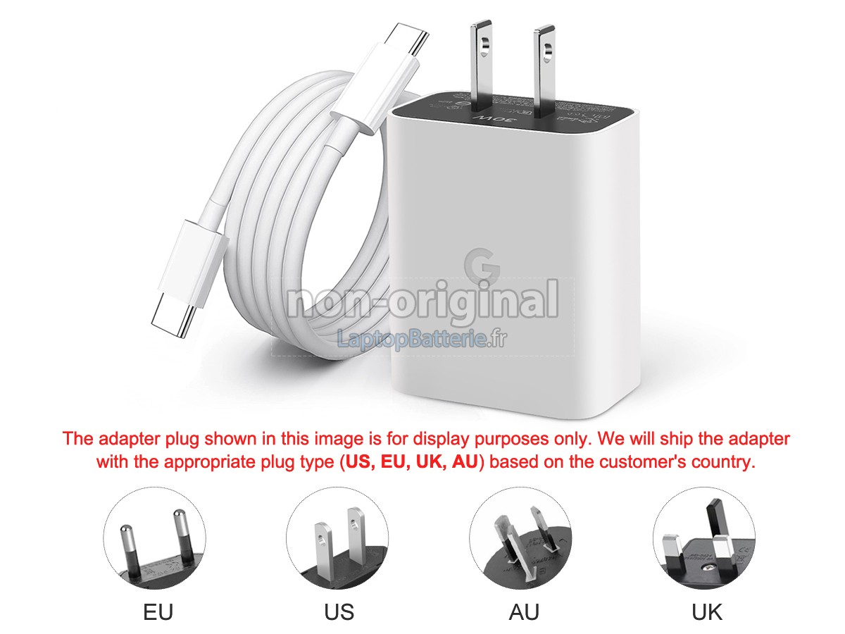 Nous offrons 12 mois de garantie pour le remplacement de adaptateur pour ordinateur de Google 30W 5V-3A USB-C CHARGER! Pendant cette période, si votre adaptateur tombe en panne à cause de problèmes de qualité, nous vous remplaçerons votre adaptateur avec une autre.