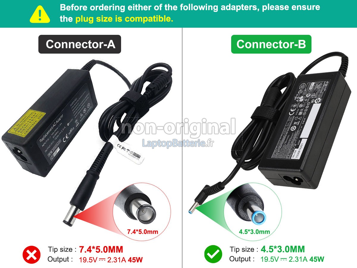 Q: Bonjour, est ce que ce chargeur est compatible avec le HP 45W 19.5V-2.31A 100-240V~1.5A 50/60HZ?