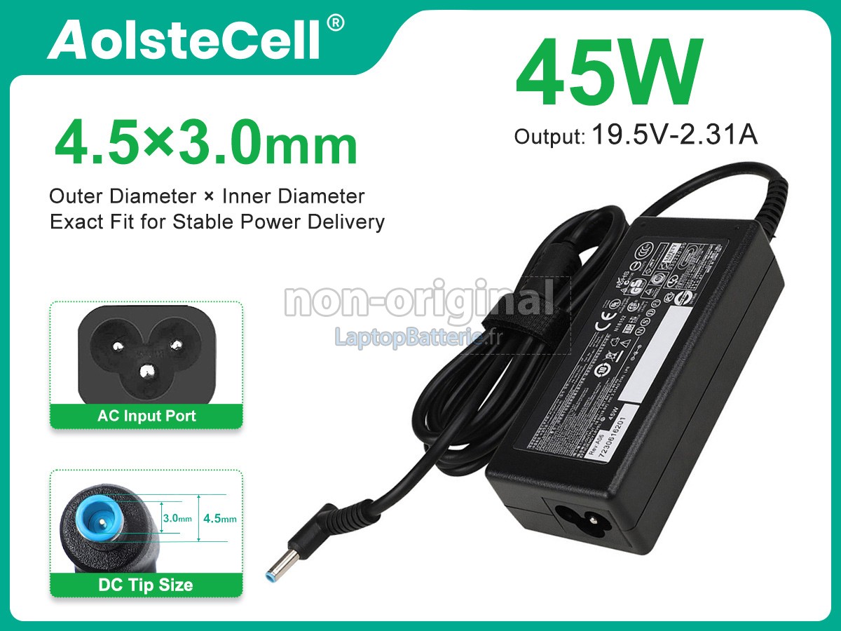 A: Bonjour, Nous vous remercions de nous avoir contactés ! L'adaptateur secteur intelligent 45W est compatible avec le HP 45W 19.5V-2.31A 100-240V~1.5A 50/60HZ.
