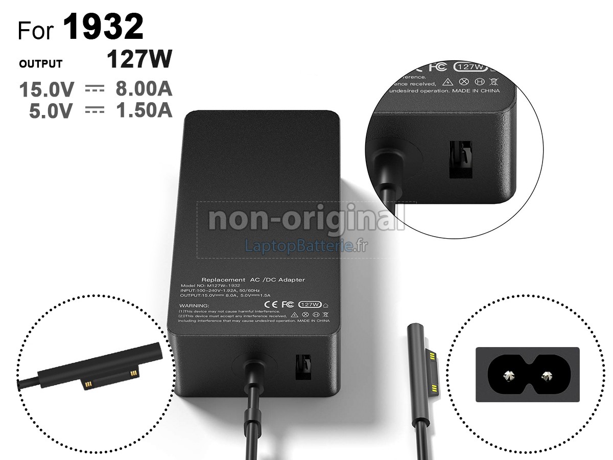 Nous offrons 12 mois de garantie pour le remplacement de adaptateur pour ordinateur de Microsoft 15V 8A 127W SURFACE PRO CHARGER! Pendant cette période, si votre adaptateur tombe en panne à cause de problèmes de qualité, nous vous remplaçerons votre adaptateur avec une autre.