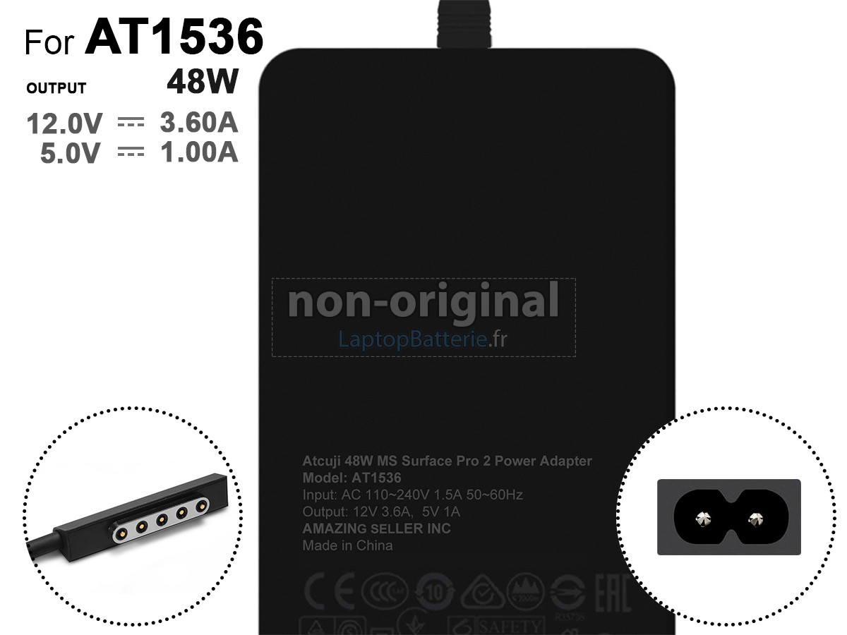 Adaptateur pour Microsoft AT1536 est un produit de haute qualité offrant des performances supérieures. Il est 100% compatible et répondra ou dépassera les spécifications de l'adaptateur d'origine. Pour garantir une performance optimale, cet adaptateur est conçu avec une protection de sécurité intelligente multiple, un boîtier en plastique ABS ignifuge, une puce IC de protection d'origine, et des composants électroniques de première qualité.