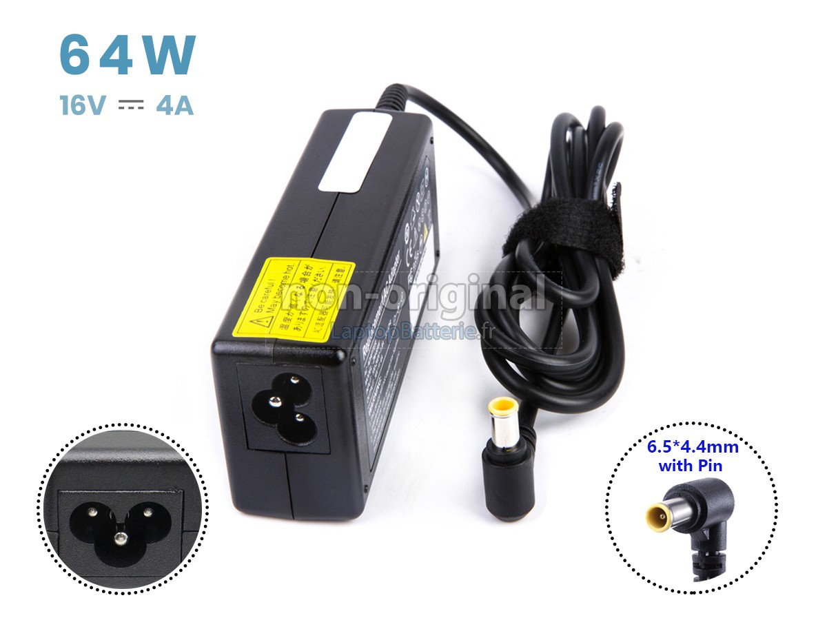 A: Bonjour, Nous vous remercions de nous avoir contactés ! L'adaptateur secteur intelligent 64W est compatible avec le Sony 16V 4A 64W YELLOW 6.5*4.4MM.