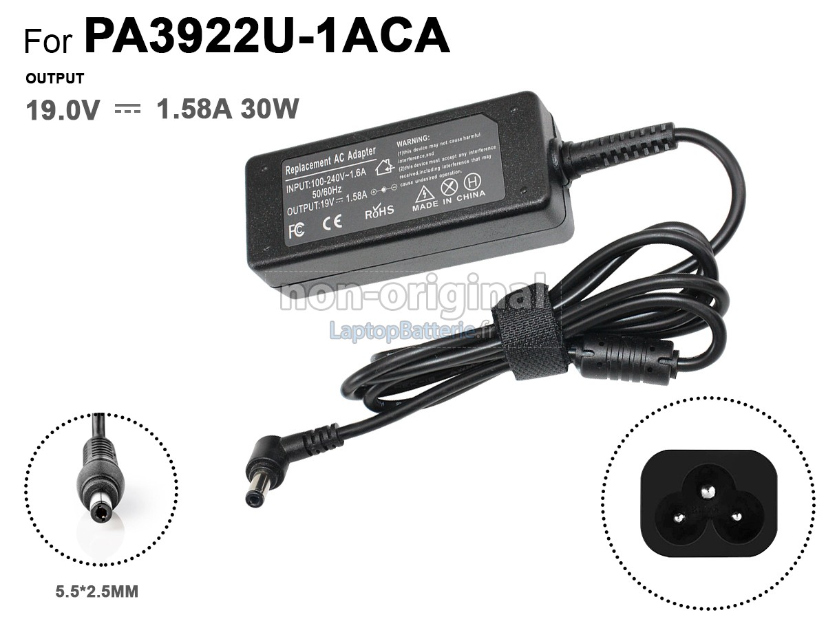A: Bonjour, Nous vous remercions de nous avoir contactés ! L'adaptateur secteur intelligent 30W est compatible avec le Toshiba 19V 1.58A 5.5*2.5MM.