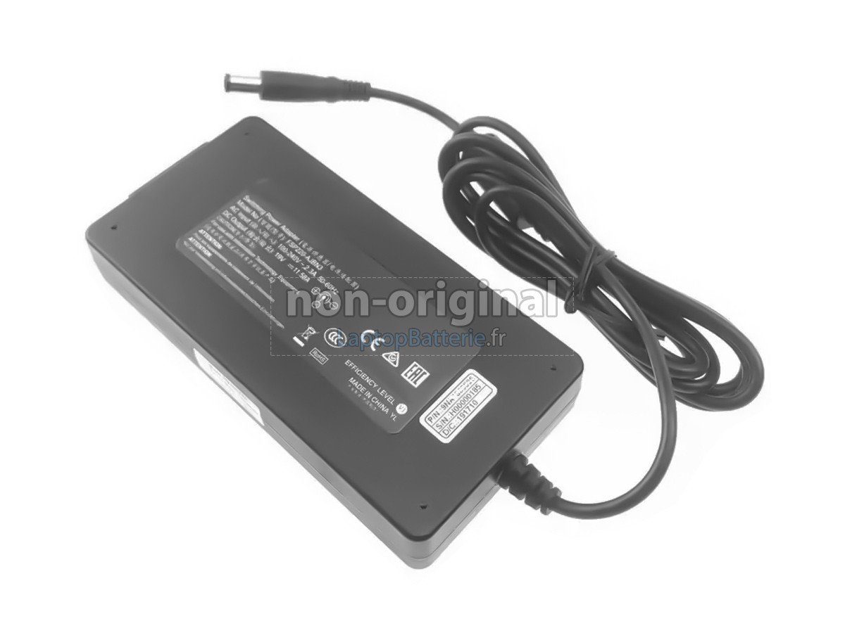 Consultez les informations sur l'adaptateur d'origine, y compris la tension d'entrée, la tension de sortie, le courant/puissance de sortie, et le type de connecteur.
