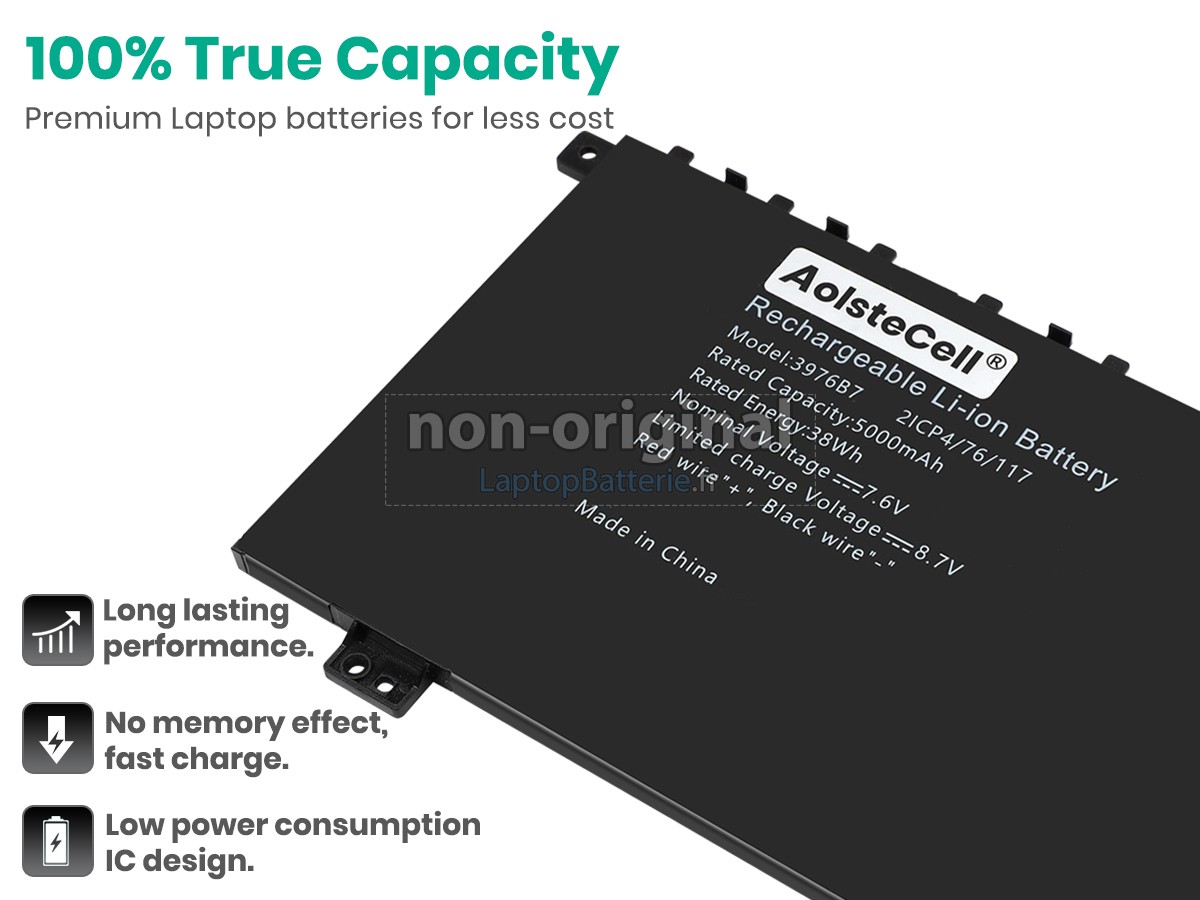 Nos exigences pour la performance de sécurité sont extrêment strictes, et chaque batterie de remplacement pour AolsteCell 3976B7 a parcouru plus de centaine tests stricts sur la qualité et la sécurité. Pour une chose plus importante, nos batteries d'ordinateur portable AolsteCell 3976B7 sont vendues directement sur Internet, sans aucun profit d'agent compris. Du coup, le prix que vous avez découvert sur notre Internet sera généralement 20-50% plus bas que nos concurrents. Si vous découvrez un produit moins cher sur l'Internet de notre concurrent, veuillez laisser nous savoir et nous résoudrons ce problème pour toi.