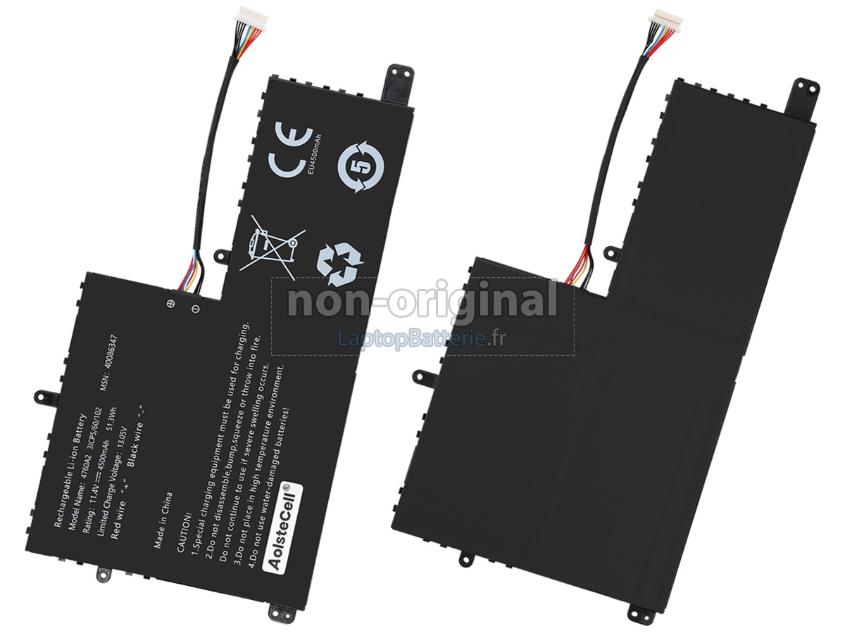 Nos exigences pour la performance de sécurité sont extrêment strictes, et chaque batterie de remplacement pour AolsteCell 4760A2 a parcouru plus de centaine tests stricts sur la qualité et la sécurité. Pour une chose plus importante, nos batteries d'ordinateur portable AolsteCell 4760A2 sont vendues directement sur Internet, sans aucun profit d'agent compris. Du coup, le prix que vous avez découvert sur notre Internet sera généralement 20-50% plus bas que nos concurrents. Si vous découvrez un produit moins cher sur l'Internet de notre concurrent, veuillez laisser nous savoir et nous résoudrons ce problème pour toi.