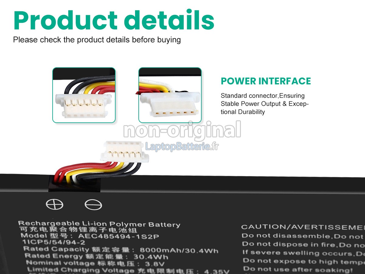 Nos exigences pour la performance de sécurité sont extrêment strictes, et chaque batterie de remplacement pour AolsteCell AEC485494-1S2P a parcouru plus de centaine tests stricts sur la qualité et la sécurité. Pour une chose plus importante, nos batteries d'ordinateur portable AolsteCell AEC485494-1S2P sont vendues directement sur Internet, sans aucun profit d'agent compris. Du coup, le prix que vous avez découvert sur notre Internet sera généralement 20-50% plus bas que nos concurrents. Si vous découvrez un produit moins cher sur l'Internet de notre concurrent, veuillez laisser nous savoir et nous résoudrons ce problème pour toi.