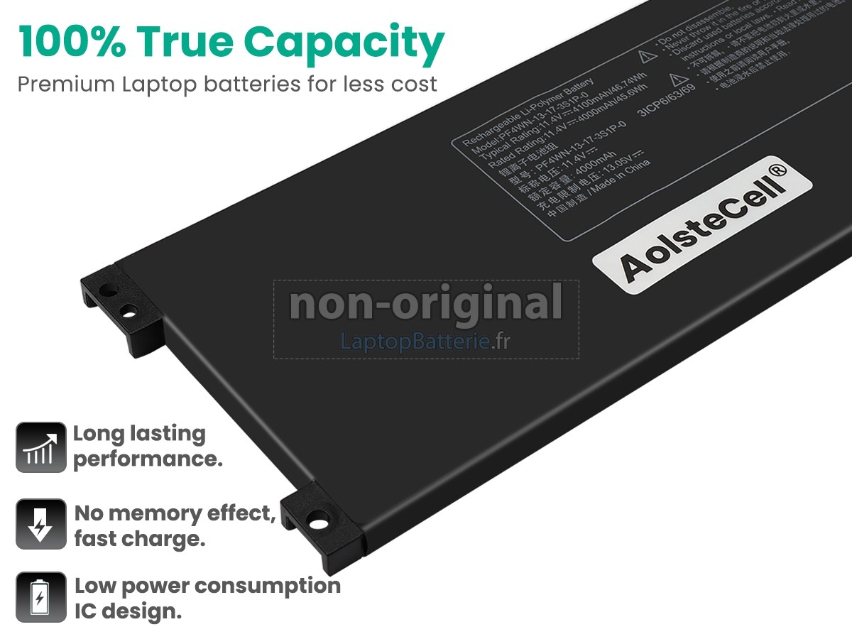 Nous offrons 12 mois de garantie pour le remplacement de batterie pour ordinateur portable de AolsteCell PF4WN-13-17-3S1P-0! Pendant cette période, si votre batterie tombe en panne à cause de problèmes de qualité, nous vous remplaçerons votre batterie avec une autre.