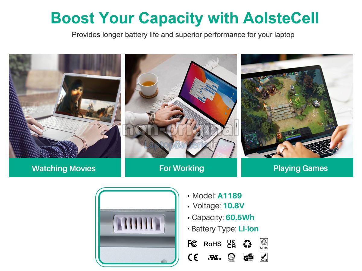 Batterie pour Apple A1212 est une produit de haute-qualité, supérieur performance, elle est 100% compatible et elle répondra ou dépassera les spécifications de la batterie d'origine. Pour garantir la meillure performance, la batterie est désignée dans une protection de sécurité d'intelligence multiple et adoptée le carter plastique ingifugeant ABS, puce IC de protection originale, batteries lithium-ion de marque.