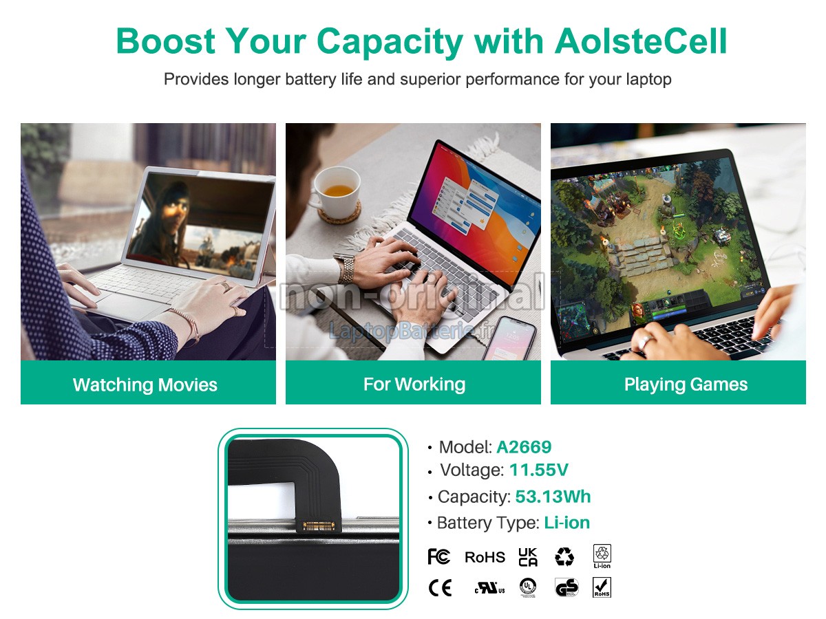 Nos exigences pour la performance de sécurité sont extrêment strictes, et chaque batterie de remplacement pour Apple MLY33LL/A a parcouru plus de centaine tests stricts sur la qualité et la sécurité. Pour une chose plus importante, nos batteries d'ordinateur portable Apple MLY33LL/A sont vendues directement sur Internet, sans aucun profit d'agent compris. Du coup, le prix que vous avez découvert sur notre Internet sera généralement 20-50% plus bas que nos concurrents. Si vous découvrez un produit moins cher sur l'Internet de notre concurrent, veuillez laisser nous savoir et nous résoudrons ce problème pour toi.