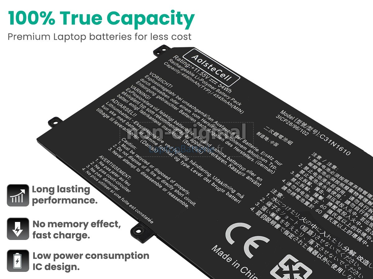 Nous offrons 12 mois de garantie pour le remplacement de batterie pour ordinateur portable de Asus 0B200-02090100! Pendant cette période, si votre batterie tombe en panne à cause de problèmes de qualité, nous vous remplaçerons votre batterie avec une autre.