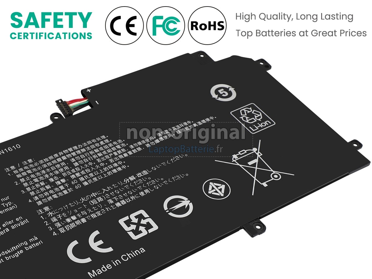 Quand la batterie Asus 0B200-02090100 n'est pas utilisée pour un long temps, la batterie doit être chargée et mise dans un endroit sec et froid. Dès lors, la batterie doit être chargée une fois par mois pour prévenir la batterie d'un endommagement sévère à cause de discharge excessive.