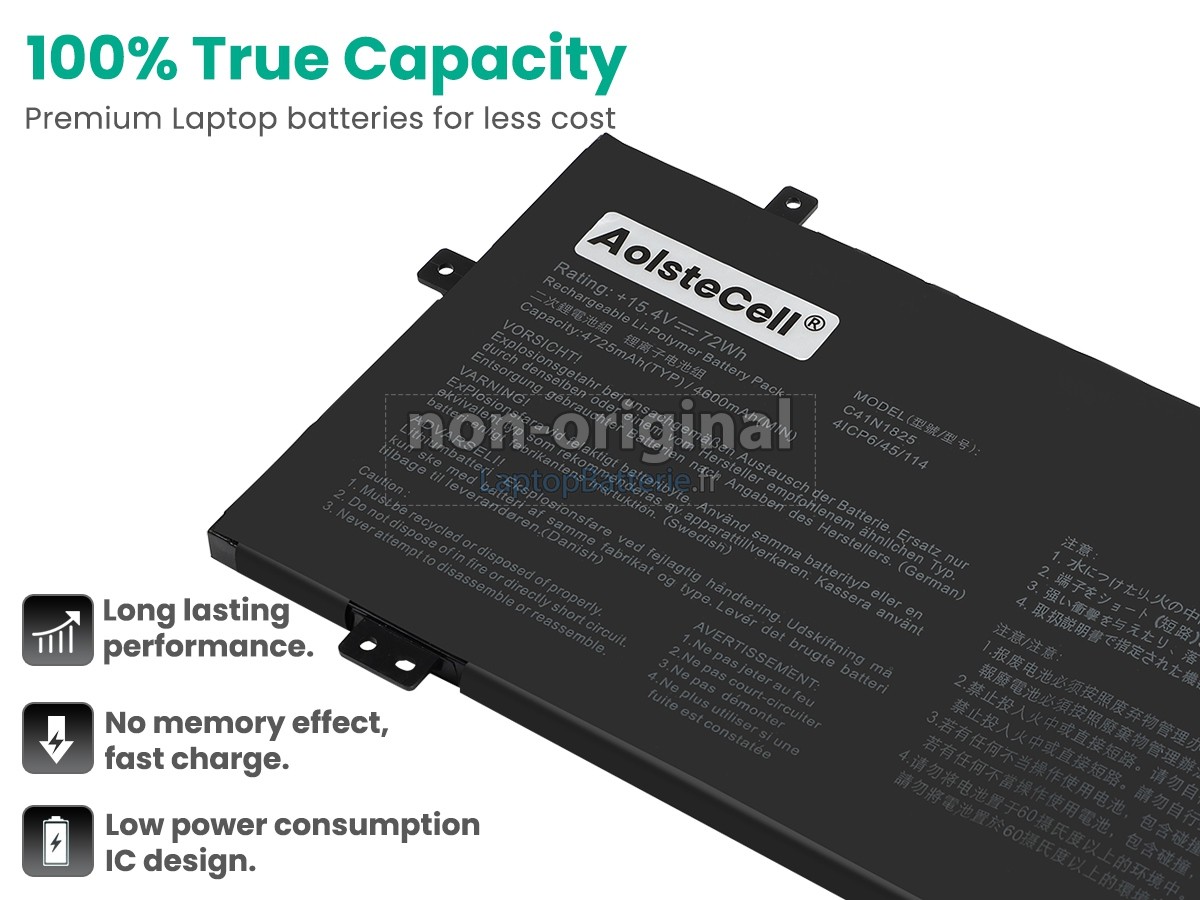 Nos exigences pour la performance de sécurité sont extrêment strictes, et chaque batterie de remplacement pour Asus 0B200-03250000 a parcouru plus de centaine tests stricts sur la qualité et la sécurité. Pour une chose plus importante, nos batteries d'ordinateur portable Asus 0B200-03250000 sont vendues directement sur Internet, sans aucun profit d'agent compris. Du coup, le prix que vous avez découvert sur notre Internet sera généralement 20-50% plus bas que nos concurrents. Si vous découvrez un produit moins cher sur l'Internet de notre concurrent, veuillez laisser nous savoir et nous résoudrons ce problème pour toi.