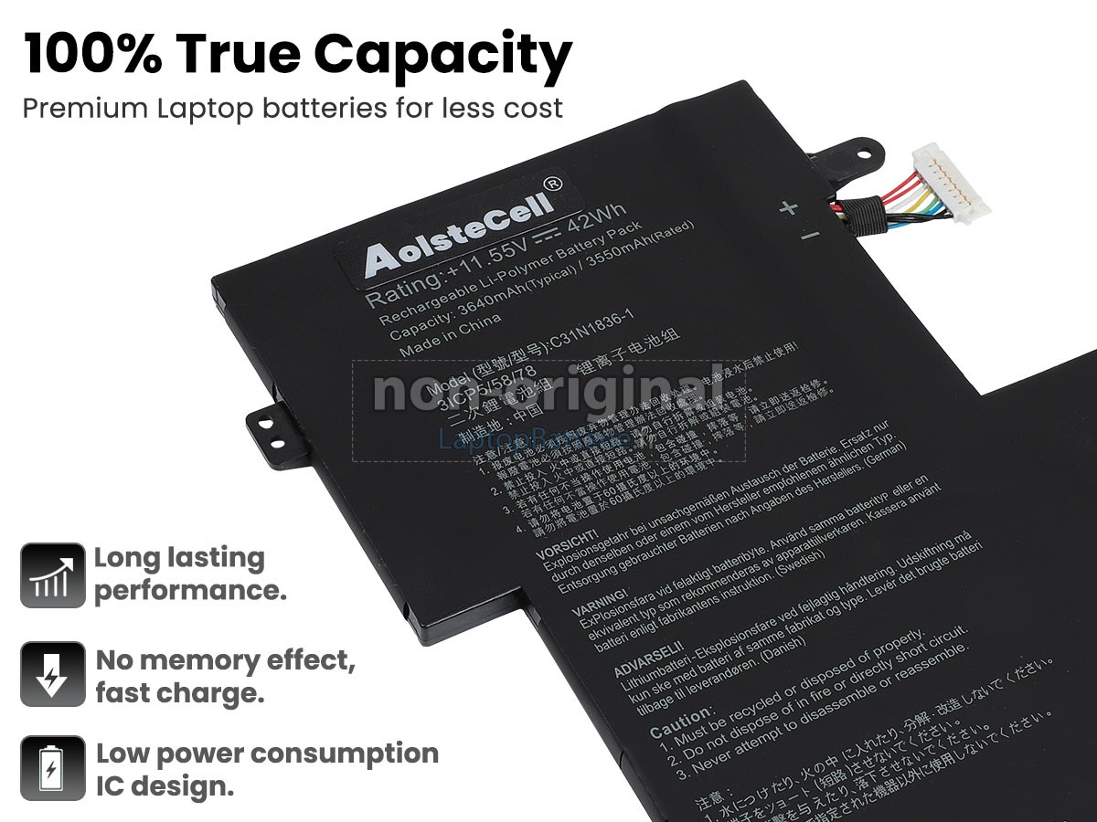 Nous offrons 12 mois de garantie pour le remplacement de batterie pour ordinateur portable de Asus 0B200-03370200! Pendant cette période, si votre batterie tombe en panne à cause de problèmes de qualité, nous vous remplaçerons votre batterie avec une autre.