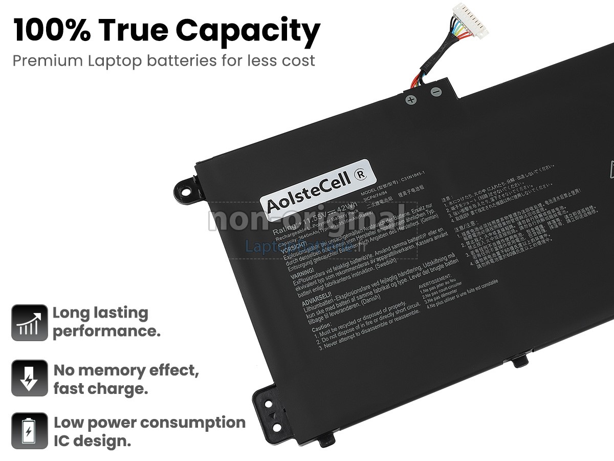 La nouvelle batterie Asus Chromebook Flip C436FA-E10130 doit être pleine chargée et déchargée jusqu'à moins que 5-10% pour 5-6 fois pour la performance normale. Traditionnellement, 7-Jour Garantie de remboursement ne peut pas satisfaire les besoins nécessaires. Dans ce but, nous étendrons la garantie de 7-jour à 30 jours.