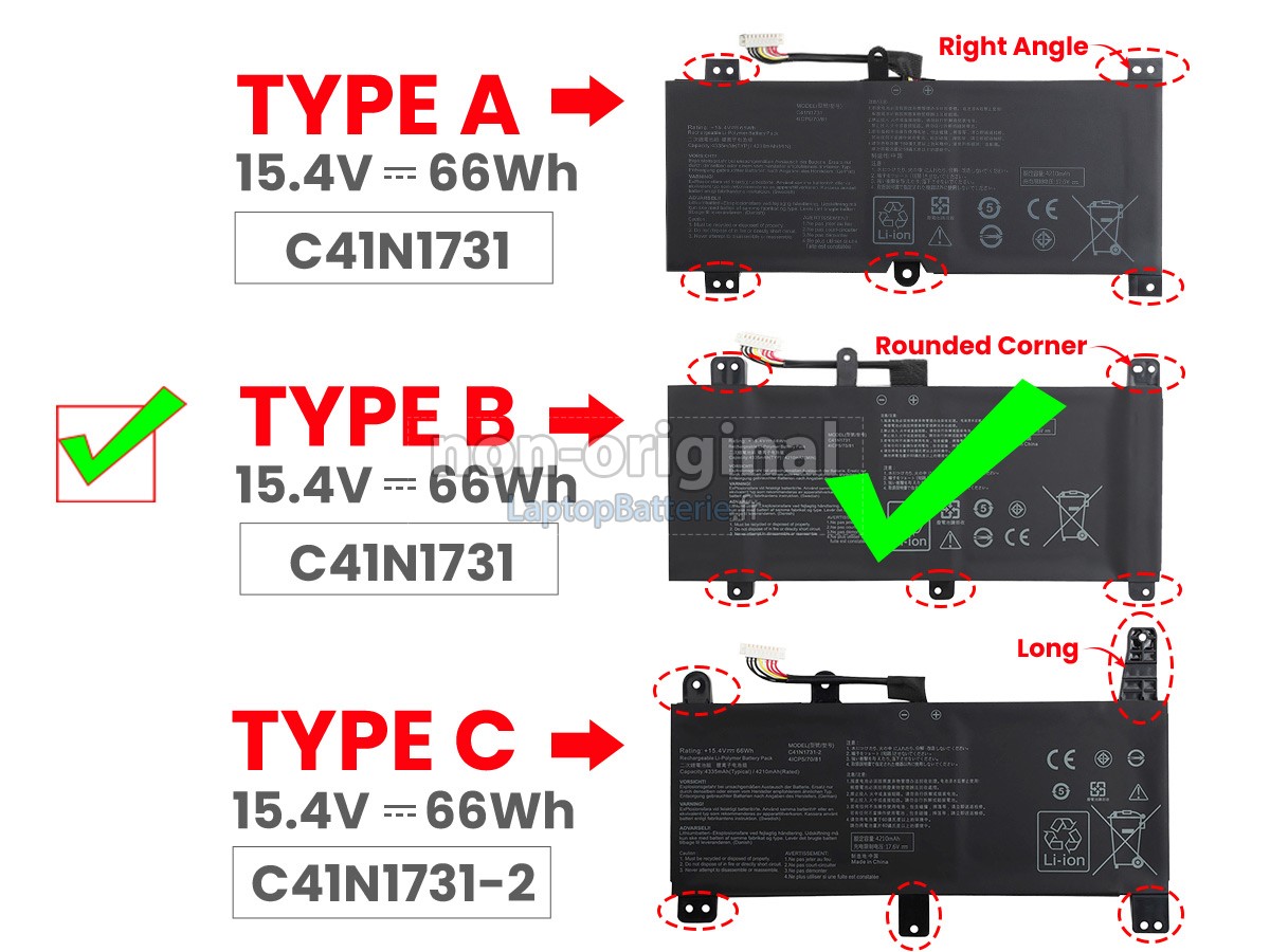 Before placing an order please open your laptop to check your old battery first, ensure order one right battery for your laptop, since there are 3 types batteries. This battery is only fit for ROG Strix G715GV, G715GW, GL704GM, GL704GV, GL704GW.