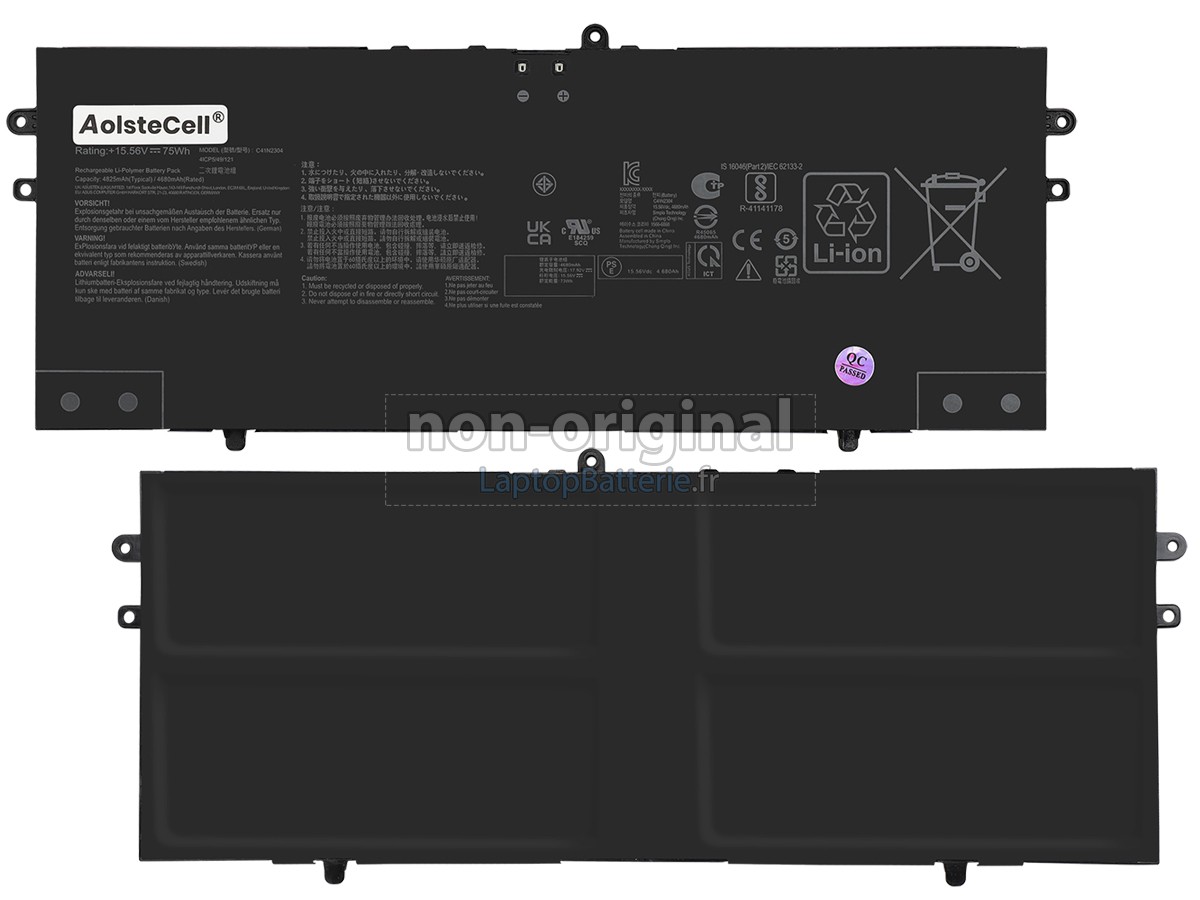Batterie pour Asus VivoBook S 16 OLED S5606CA est une produit de haute-qualité, supérieur performance, elle est 100% compatible et elle répondra ou dépassera les spécifications de la batterie d'origine. Pour garantir la meillure performance, la batterie est désignée dans une protection de sécurité d'intelligence multiple et adoptée le carter plastique ingifugeant ABS, puce IC de protection originale, batteries lithium-ion de marque.