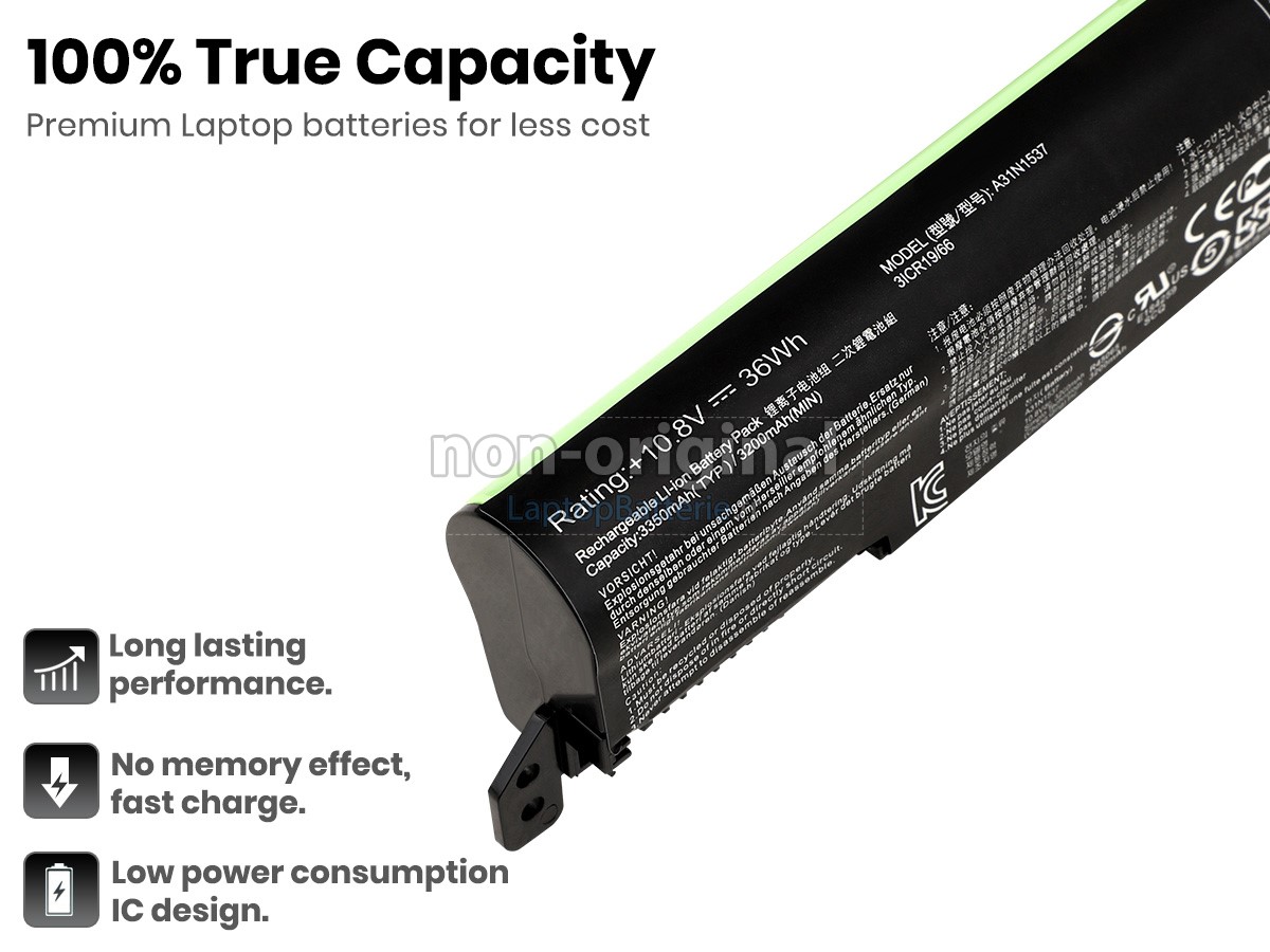 La nouvelle batterie Asus X441UA-3F doit être pleine chargée et déchargée jusqu'à moins que 5-10% pour 5-6 fois pour la performance normale. Traditionnellement, 7-Jour Garantie de remboursement ne peut pas satisfaire les besoins nécessaires. Dans ce but, nous étendrons la garantie de 7-jour à 30 jours.