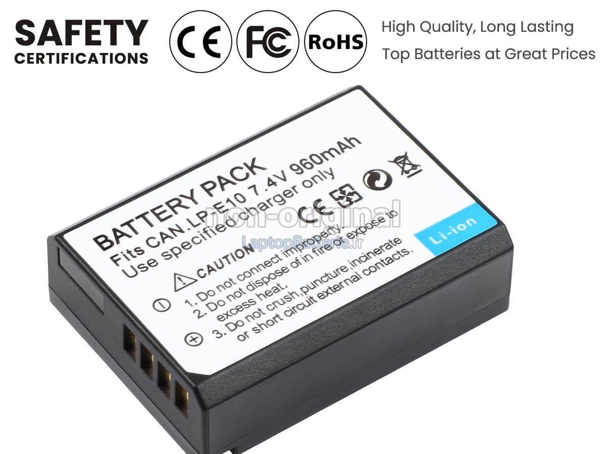 Nos exigences pour la performance de sécurité sont extrêment strictes, et chaque batterie de remplacement pour Canon EOS 3000D a parcouru plus de centaine tests stricts sur la qualité et la sécurité. Pour une chose plus importante, nos batteries Canon EOS 3000D sont vendues directement sur Internet, sans aucun profit d'agent compris. Du coup, le prix que vous avez découvert sur notre Internet sera généralement 20-50% plus bas que nos concurrents. Si vous découvrez un produit moins cher sur l'Internet de notre concurrent, veuillez laisser nous savoir et nous résoudrons ce problème pour toi.