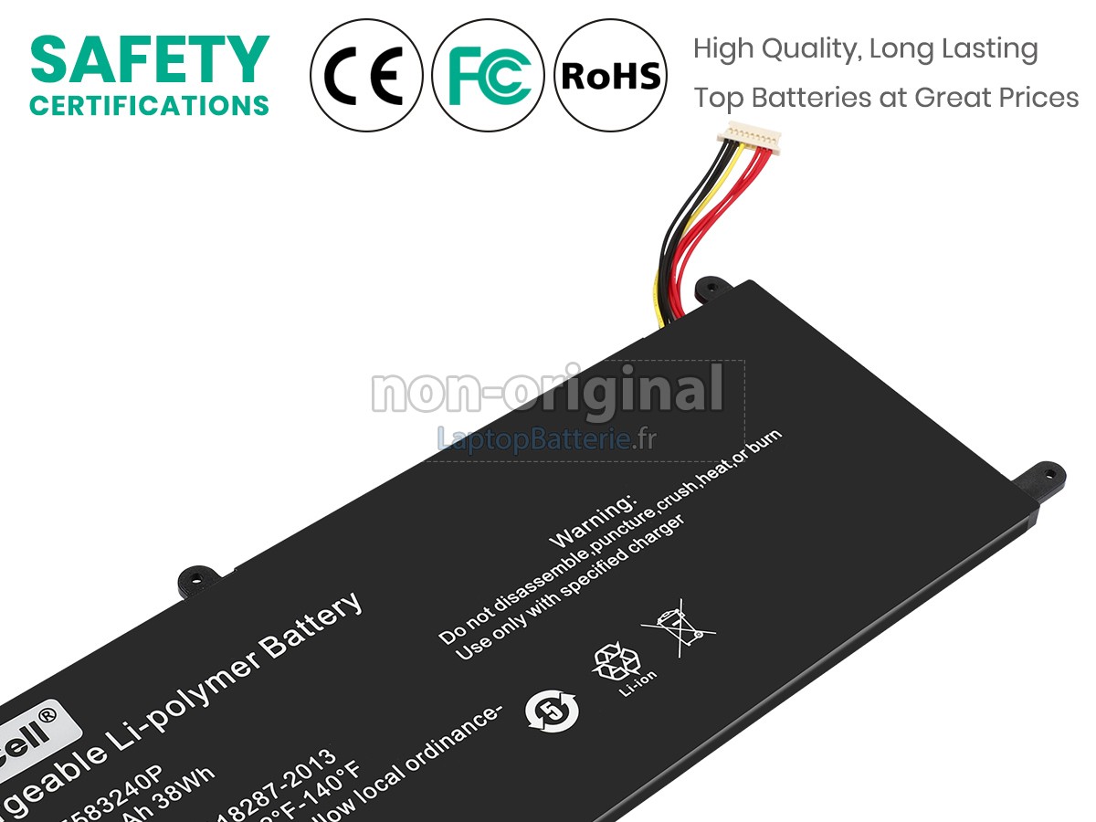 Nos exigences pour la performance de sécurité sont extrêment strictes, et chaque batterie de remplacement pour Cooyes 5583240P a parcouru plus de centaine tests stricts sur la qualité et la sécurité. Pour une chose plus importante, nos batteries d'ordinateur portable Cooyes 5583240P sont vendues directement sur Internet, sans aucun profit d'agent compris. Du coup, le prix que vous avez découvert sur notre Internet sera généralement 20-50% plus bas que nos concurrents. Si vous découvrez un produit moins cher sur l'Internet de notre concurrent, veuillez laisser nous savoir et nous résoudrons ce problème pour toi.