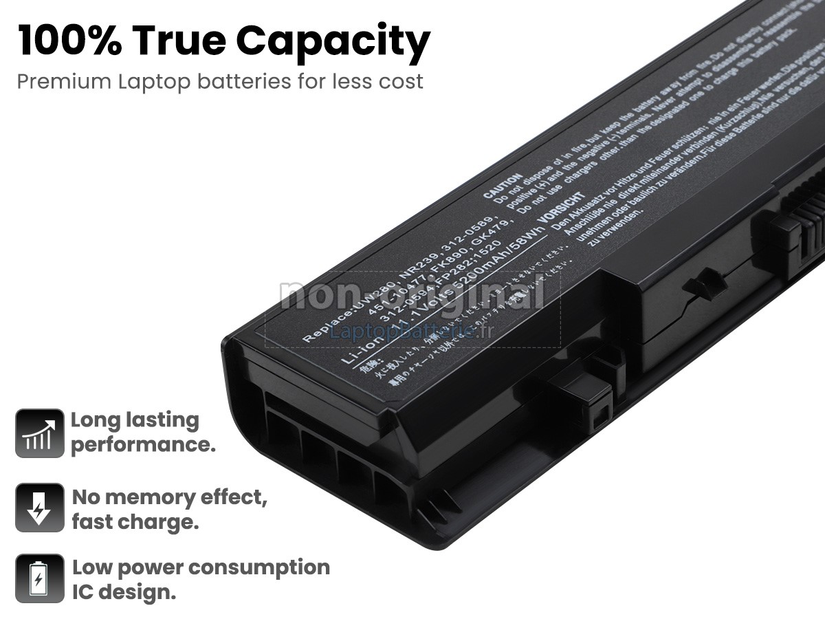 Batterie pour Dell Inspiron 1720 est une produit de haute-qualité, supérieur performance, elle est 100% compatible et elle répondra ou dépassera les spécifications de la batterie d'origine. Pour garantir la meillure performance, la batterie est désignée dans une protection de sécurité d'intelligence multiple et adoptée le carter plastique ingifugeant ABS, puce IC de protection originale, batteries lithium-ion de marque.