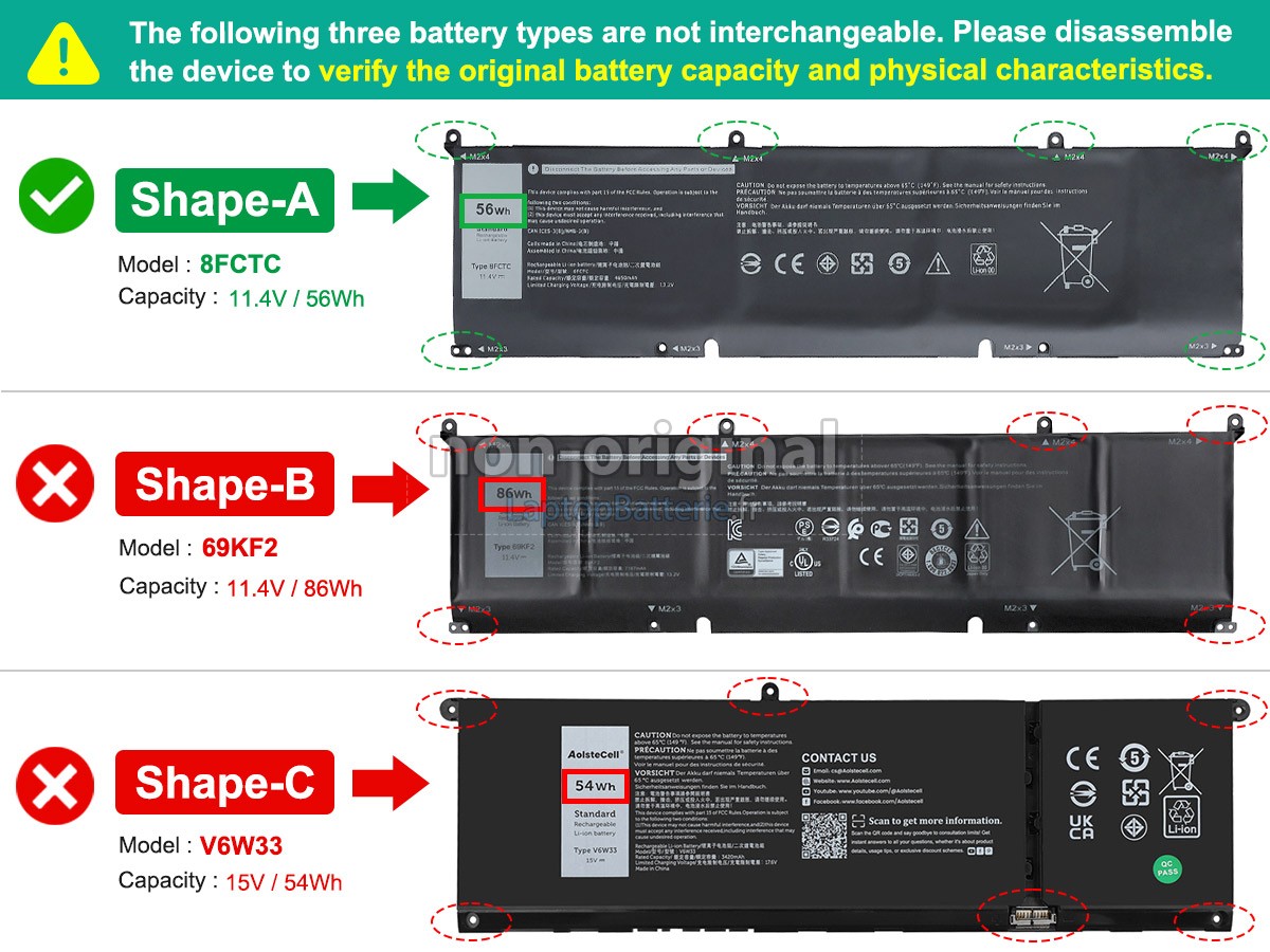Veuillez comparer l'image dans "Images grands du produit" avec votre ancienne batterie pour assurer que ses formes sont identiques.