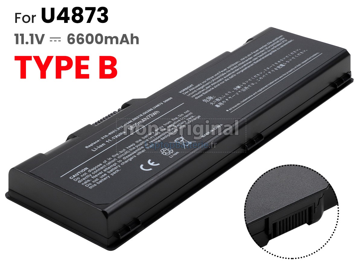 Batterie pour Dell U4873 est une produit de haute-qualité, supérieur performance, elle est 100% compatible et elle répondra ou dépassera les spécifications de la batterie d'origine. Pour garantir la meillure performance, la batterie est désignée dans une protection de sécurité d'intelligence multiple et adoptée le carter plastique ingifugeant ABS, puce IC de protection originale, batteries lithium-ion de marque.