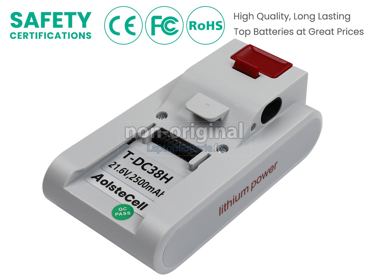 Nos exigences pour la performance de sécurité sont extrêment strictes, et chaque batterie de remplacement pour DeLonghi T-DC38 a parcouru plus de centaine tests stricts sur la qualité et la sécurité. Pour une chose plus importante, nos batteries aspirateur DeLonghi T-DC38 sont vendues directement sur Internet, sans aucun profit d'agent compris. Du coup, le prix que vous avez découvert sur notre Internet sera généralement 20-50% plus bas que nos concurrents. Si vous découvrez un produit moins cher sur l'Internet de notre concurrent, veuillez laisser nous savoir et nous résoudrons ce problème pour toi.