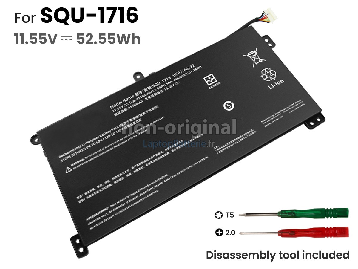 Vous besoin de trouver nom du modèle pour votre ordinateur de portable ou numéro partiel de votre ancienne batterie(e.g. "SQU-1716"), ensuite vérifier si les batteries sont dans le table "Compatibles Modèles " ou le table "Compatible partie de la batterie".