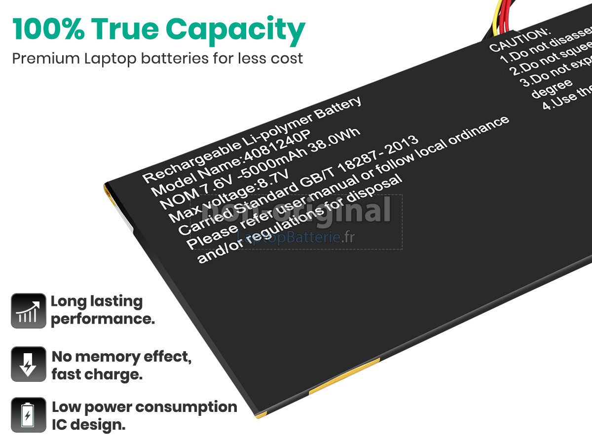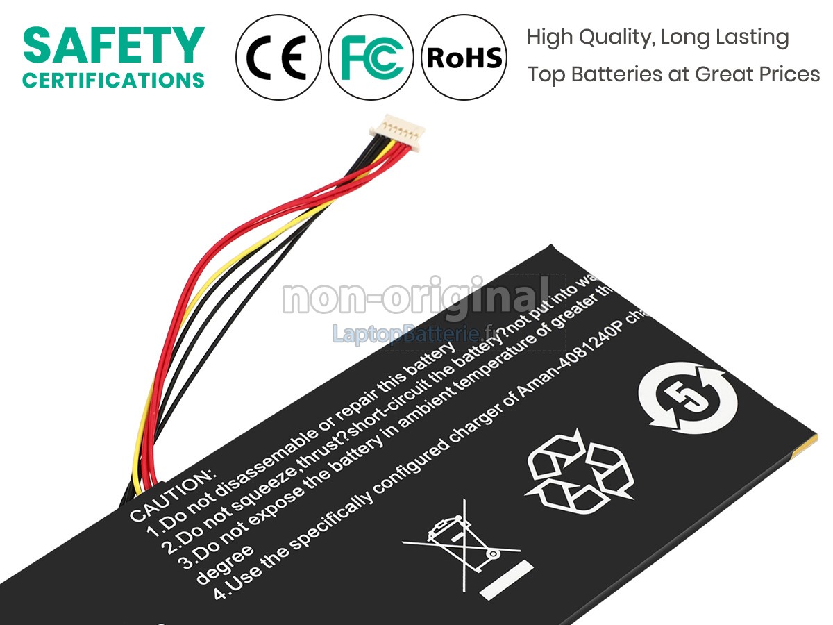 Nos exigences pour la performance de sécurité sont extrêment strictes, et chaque batterie de remplacement pour HIPAA 4081240P a parcouru plus de centaine tests stricts sur la qualité et la sécurité. Pour une chose plus importante, nos batteries d'ordinateur portable HIPAA 4081240P sont vendues directement sur Internet, sans aucun profit d'agent compris. Du coup, le prix que vous avez découvert sur notre Internet sera généralement 20-50% plus bas que nos concurrents. Si vous découvrez un produit moins cher sur l'Internet de notre concurrent, veuillez laisser nous savoir et nous résoudrons ce problème pour toi.