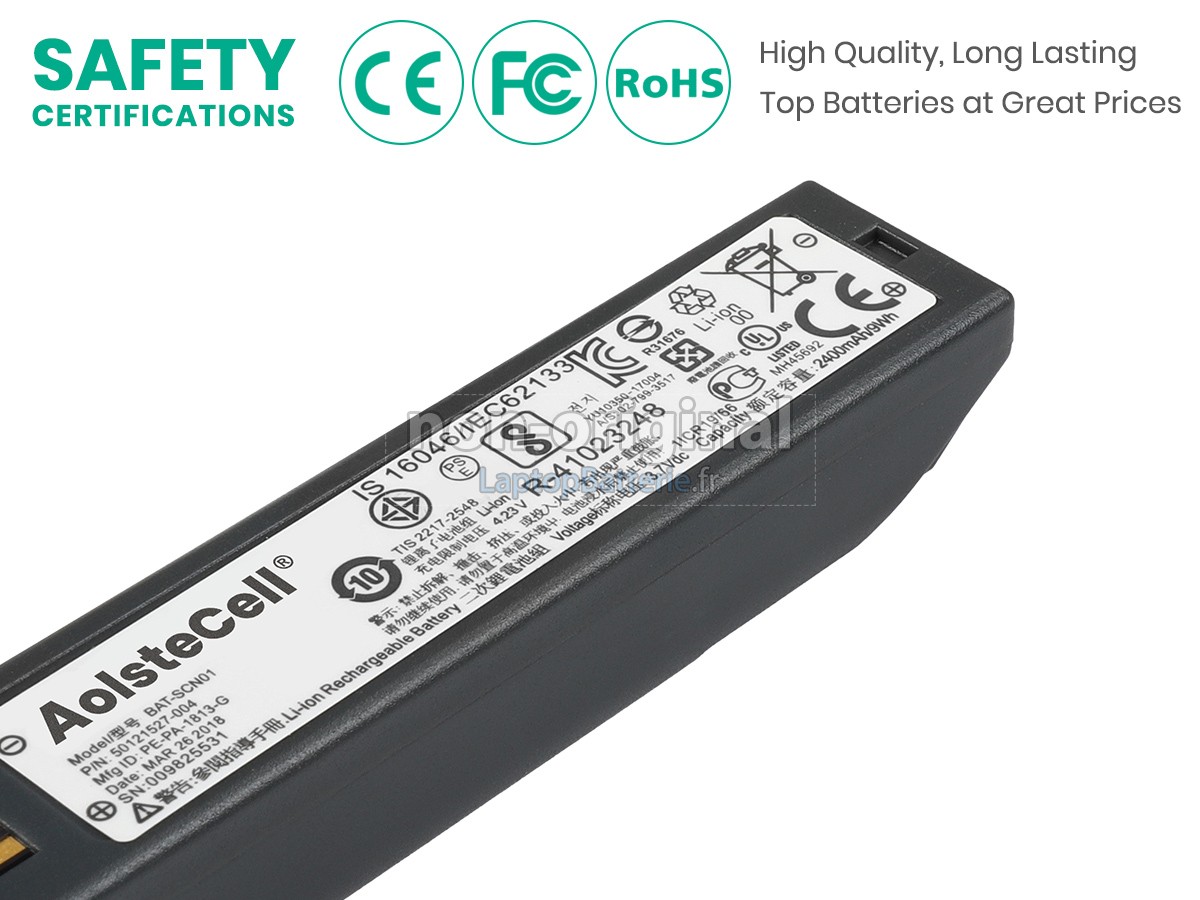 Nos exigences pour la performance de sécurité sont extrêment strictes, et chaque batterie de remplacement pour Honeywell BAT-SCN01 a parcouru plus de centaine tests stricts sur la qualité et la sécurité. Pour une chose plus importante, nos batteries Honeywell BAT-SCN01 sont vendues directement sur Internet, sans aucun profit d'agent compris. Du coup, le prix que vous avez découvert sur notre Internet sera généralement 20-50% plus bas que nos concurrents. Si vous découvrez un produit moins cher sur l'Internet de notre concurrent, veuillez laisser nous savoir et nous résoudrons ce problème pour toi.