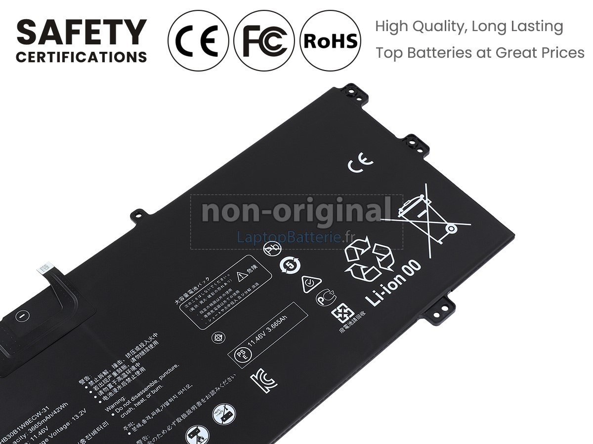 Nos exigences pour la performance de sécurité sont extrêment strictes, et chaque batterie de remplacement pour Huawei EUL-W19P a parcouru plus de centaine tests stricts sur la qualité et la sécurité. Pour une chose plus importante, nos batteries d'ordinateur portable Huawei EUL-W19P sont vendues directement sur Internet, sans aucun profit d'agent compris. Du coup, le prix que vous avez découvert sur notre Internet sera généralement 20-50% plus bas que nos concurrents. Si vous découvrez un produit moins cher sur l'Internet de notre concurrent, veuillez laisser nous savoir et nous résoudrons ce problème pour toi.