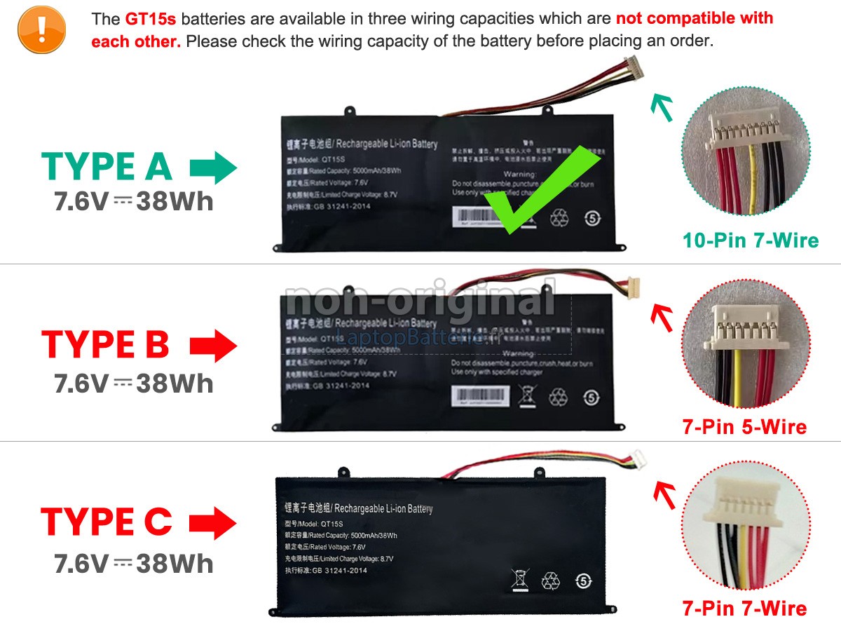Vous besoin de trouver nom du modèle pour votre ordinateur de portable ou numéro partiel de votre ancienne batterie(e.g. "P1X8GBJ41"), ensuite vérifier si les batteries sont dans le table "Compatibles Modèles " ou le table "Compatible partie de la batterie".