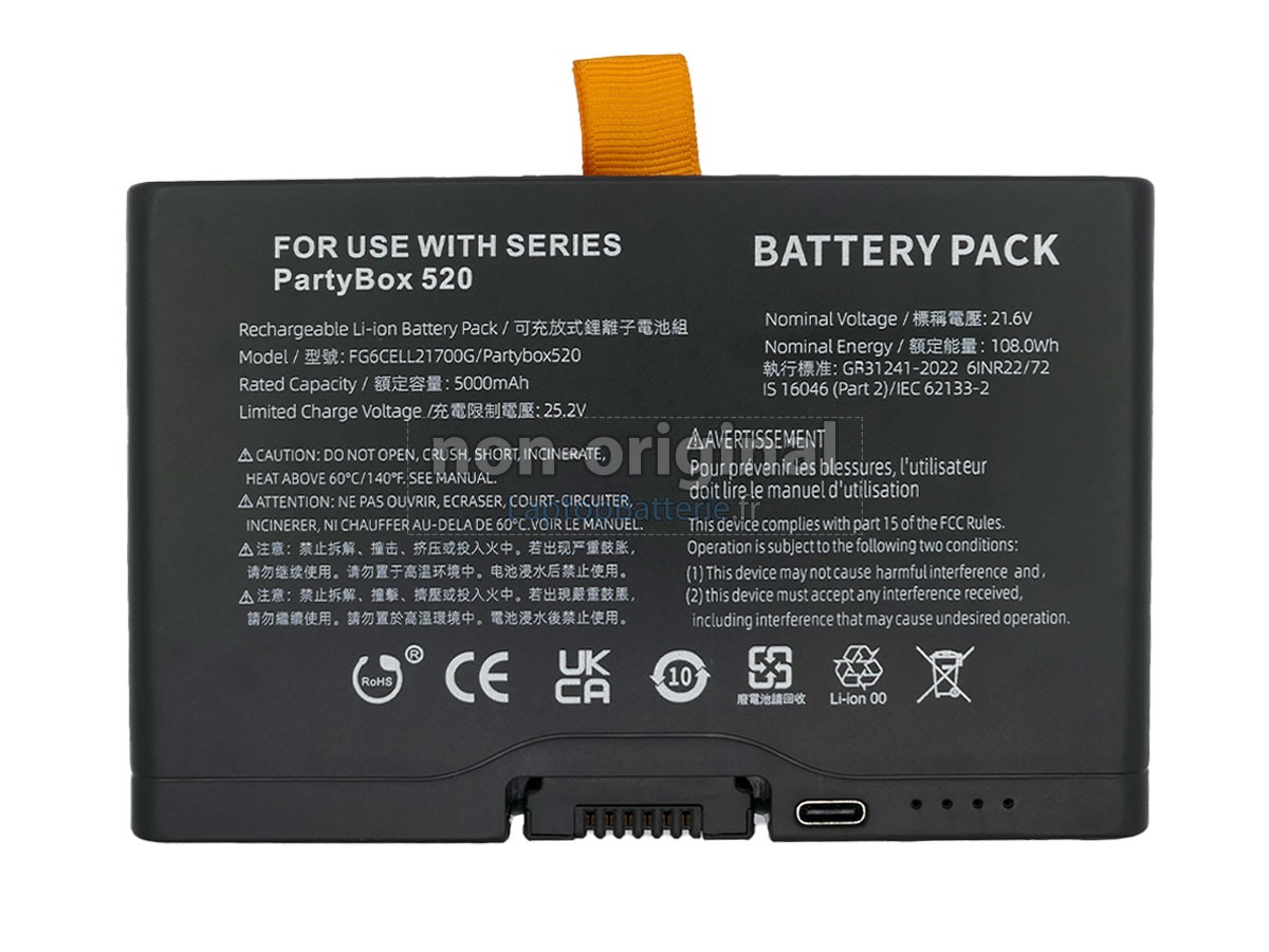 Batterie pour JBL FG6CELL21700G est une produit de haute-qualité, supérieur performance, elle est 100% compatible et elle répondra ou dépassera les spécifications de la batterie d'origine. Pour garantir la meillure performance, la batterie est désignée dans une protection de sécurité d'intelligence multiple et adoptée le carter plastique ingifugeant ABS, puce IC de protection originale, batteries lithium-ion de marque.
