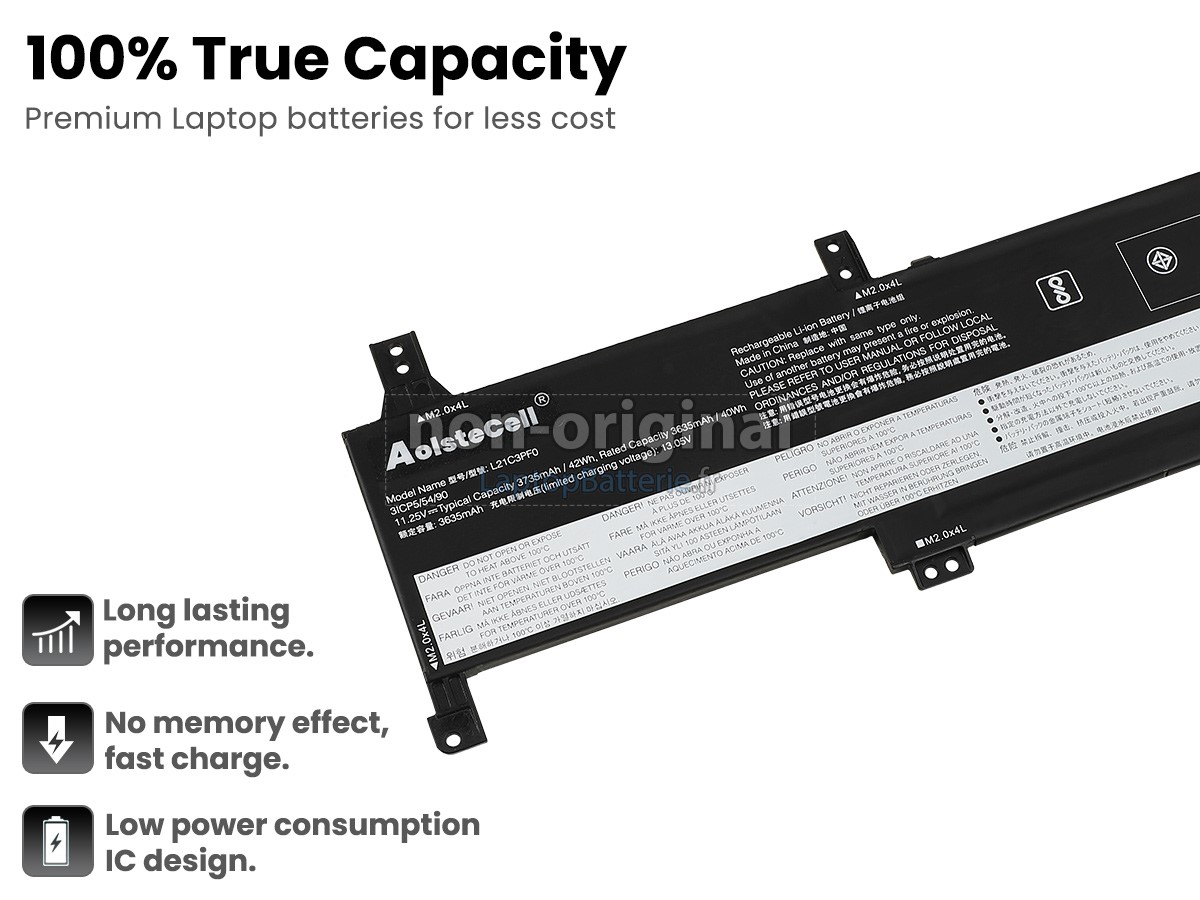 Nous offrons 12 mois de garantie pour le remplacement de batterie pour ordinateur portable de Lenovo IdeaPad 1 14IGL7-82V6003LIX! Pendant cette période, si votre batterie tombe en panne à cause de problèmes de qualité, nous vous remplaçerons votre batterie avec une autre.