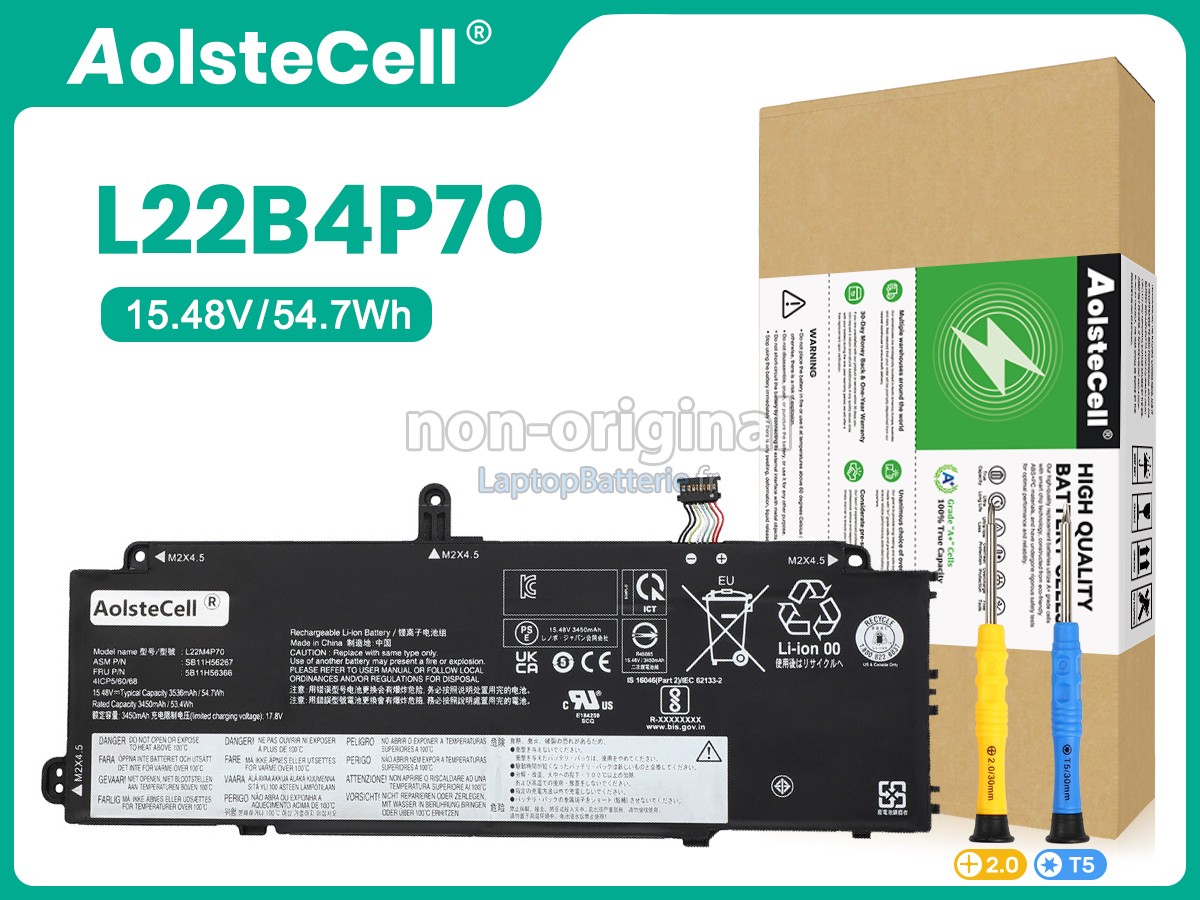 Batterie pour Lenovo L22C4P70 est une produit de haute-qualité, supérieur performance, elle est 100% compatible et elle répondra ou dépassera les spécifications de la batterie d'origine. Pour garantir la meillure performance, la batterie est désignée dans une protection de sécurité d'intelligence multiple et adoptée le carter plastique ingifugeant ABS, puce IC de protection originale, batteries lithium-ion de marque.