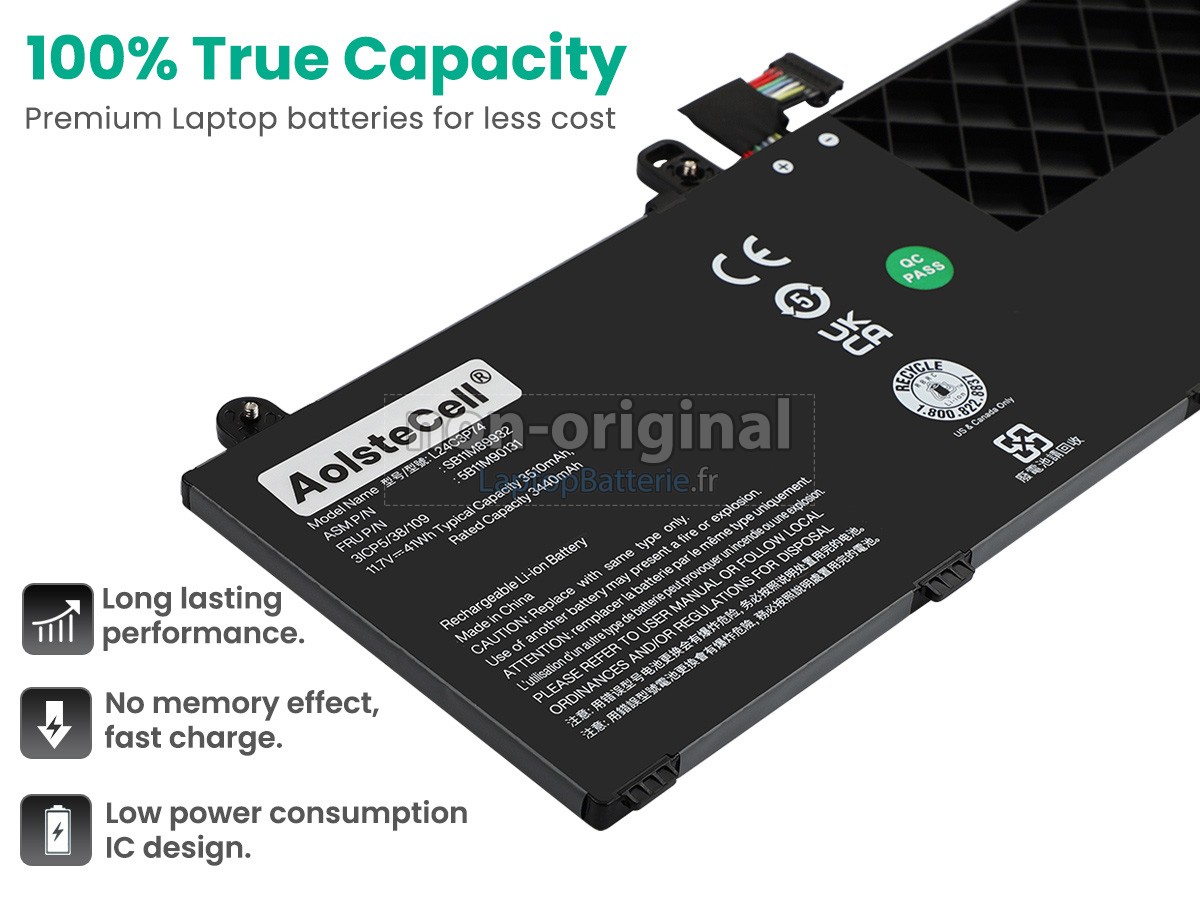 Nos exigences pour la performance de sécurité sont extrêment strictes, et chaque batterie de remplacement pour Lenovo L24C3P74 a parcouru plus de centaine tests stricts sur la qualité et la sécurité. Pour une chose plus importante, nos batteries d'ordinateur portable Lenovo L24C3P74 sont vendues directement sur Internet, sans aucun profit d'agent compris. Du coup, le prix que vous avez découvert sur notre Internet sera généralement 20-50% plus bas que nos concurrents. Si vous découvrez un produit moins cher sur l'Internet de notre concurrent, veuillez laisser nous savoir et nous résoudrons ce problème pour toi.