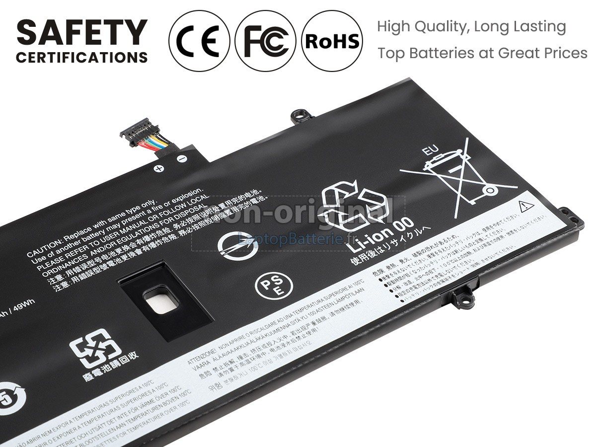 Nos exigences pour la performance de sécurité sont extrêment strictes, et chaque batterie de remplacement pour Lenovo ThinkPad X1 CARBON GEN 8-20U9S1RD00 a parcouru plus de centaine tests stricts sur la qualité et la sécurité. Pour une chose plus importante, nos batteries d'ordinateur portable Lenovo ThinkPad X1 CARBON GEN 8-20U9S1RD00 sont vendues directement sur Internet, sans aucun profit d'agent compris. Du coup, le prix que vous avez découvert sur notre Internet sera généralement 20-50% plus bas que nos concurrents. Si vous découvrez un produit moins cher sur l'Internet de notre concurrent, veuillez laisser nous savoir et nous résoudrons ce problème pour toi.