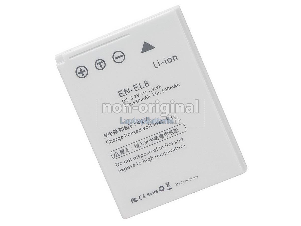 Nos exigences pour la performance de sécurité sont extrêment strictes, et chaque batterie de remplacement pour Nikon EN-EL8 a parcouru plus de centaine tests stricts sur la qualité et la sécurité. Pour une chose plus importante, nos batteries Nikon EN-EL8 sont vendues directement sur Internet, sans aucun profit d'agent compris. Du coup, le prix que vous avez découvert sur notre Internet sera généralement 20-50% plus bas que nos concurrents. Si vous découvrez un produit moins cher sur l'Internet de notre concurrent, veuillez laisser nous savoir et nous résoudrons ce problème pour toi.