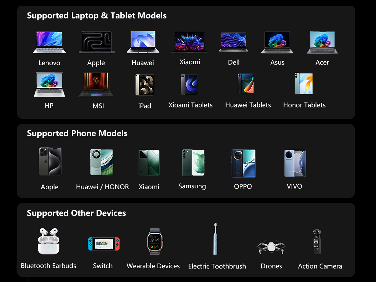 Profitez d’une puissance exceptionnelle avec cette batterie externe premium de 20000mAh délivrant jusqu’à 100W grâce au protocole PD 3.0 et aux autres technologies de charge rapide. Chargez votre MacBook Air (M3) à 50 % ou votre iPhone (dernier modèle) à 60 % en seulement 30 minutes (tests en laboratoire). Le câble Type-C rétractable intégré de 70 cm supporte la pleine puissance 100W (20V/5A), vous évitant d’emporter des câbles supplémentaires – idéal pour les voyages, le télétravail ou les déplacements quotidiens.