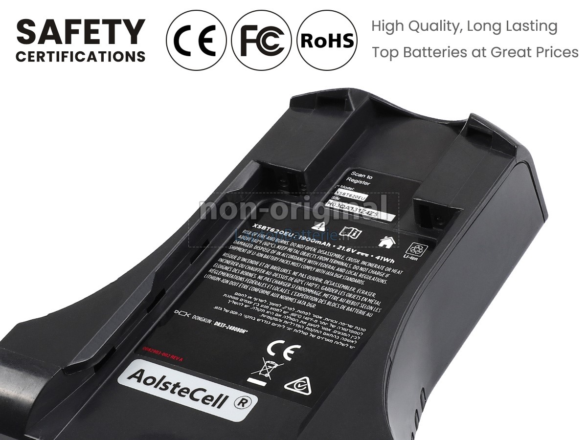 Nos exigences pour la performance de sécurité sont extrêment strictes, et chaque batterie de remplacement pour Shark X2 a parcouru plus de centaine tests stricts sur la qualité et la sécurité. Pour une chose plus importante, nos batteries aspirateur Shark X2 sont vendues directement sur Internet, sans aucun profit d'agent compris. Du coup, le prix que vous avez découvert sur notre Internet sera généralement 20-50% plus bas que nos concurrents. Si vous découvrez un produit moins cher sur l'Internet de notre concurrent, veuillez laisser nous savoir et nous résoudrons ce problème pour toi.