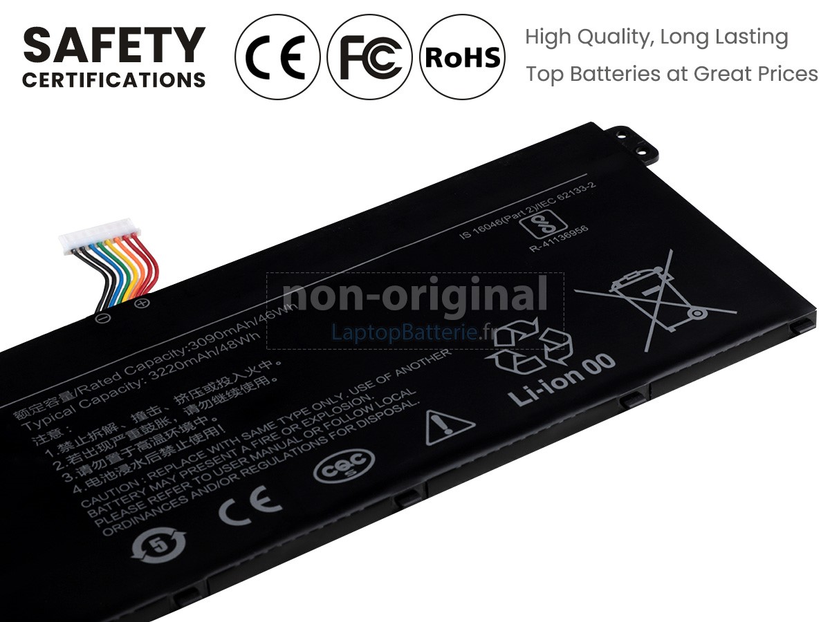 Nos exigences pour la performance de sécurité sont extrêment strictes, et chaque batterie de remplacement pour XiaoMi XMA1901-YN a parcouru plus de centaine tests stricts sur la qualité et la sécurité. Pour une chose plus importante, nos batteries d'ordinateur portable XiaoMi XMA1901-YN sont vendues directement sur Internet, sans aucun profit d'agent compris. Du coup, le prix que vous avez découvert sur notre Internet sera généralement 20-50% plus bas que nos concurrents. Si vous découvrez un produit moins cher sur l'Internet de notre concurrent, veuillez laisser nous savoir et nous résoudrons ce problème pour toi.